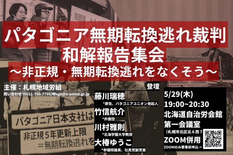 以下は「パタゴニア無期転換逃れ裁判和解報告集会 〜非正規・無期転換逃れをなくそう〜 主催:札幌地域労組」における北海学園大学の川村雅則氏の報告内容です。